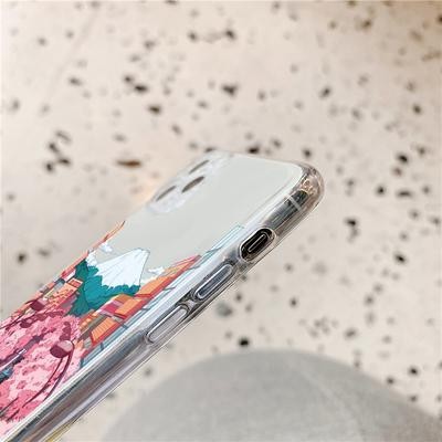 Японский эстетический прозрачный чехол Traint Moun Fuji для iPhone 14 13 12 11 Pro Max 8 7 Redmi 12C