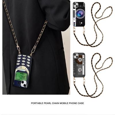 титульная страница > Электронная продукция > Ретро лента Роскошный кроссбоди Ремешок Ожерелье Кожаный браслет Цепь Чехол для телефона для iPhone