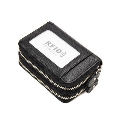 титульная страница > Сумки и чемоданы > RFID Блокировка Мода Женщины Держатель карты Подлинная кожа Двойная молния Большая емкость Женский к