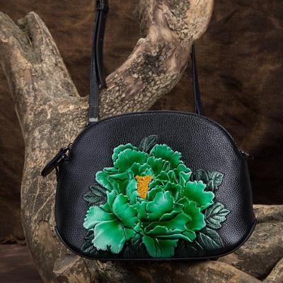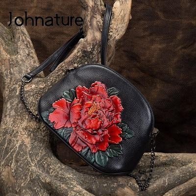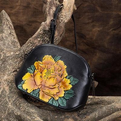 Shell Цепочка Сумка Женщины Плечо и кроссбоди Сумки Ретро Сладкая натуральная кожа Тисненый Цветочны