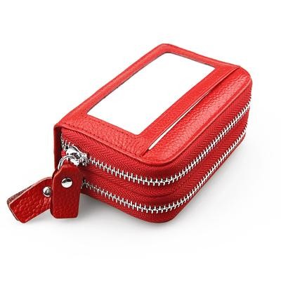Мода Женщины Подлинная кожа Держатель кредитной карты Кошелек Большая емкость Двойная молния Женский