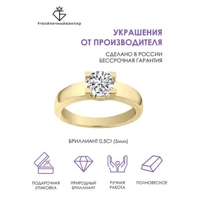 Кольцо золотое с бриллиантом помолвочное женское 585 пробы ТВОЙЛИЧНЫЙЮВЕЛИР